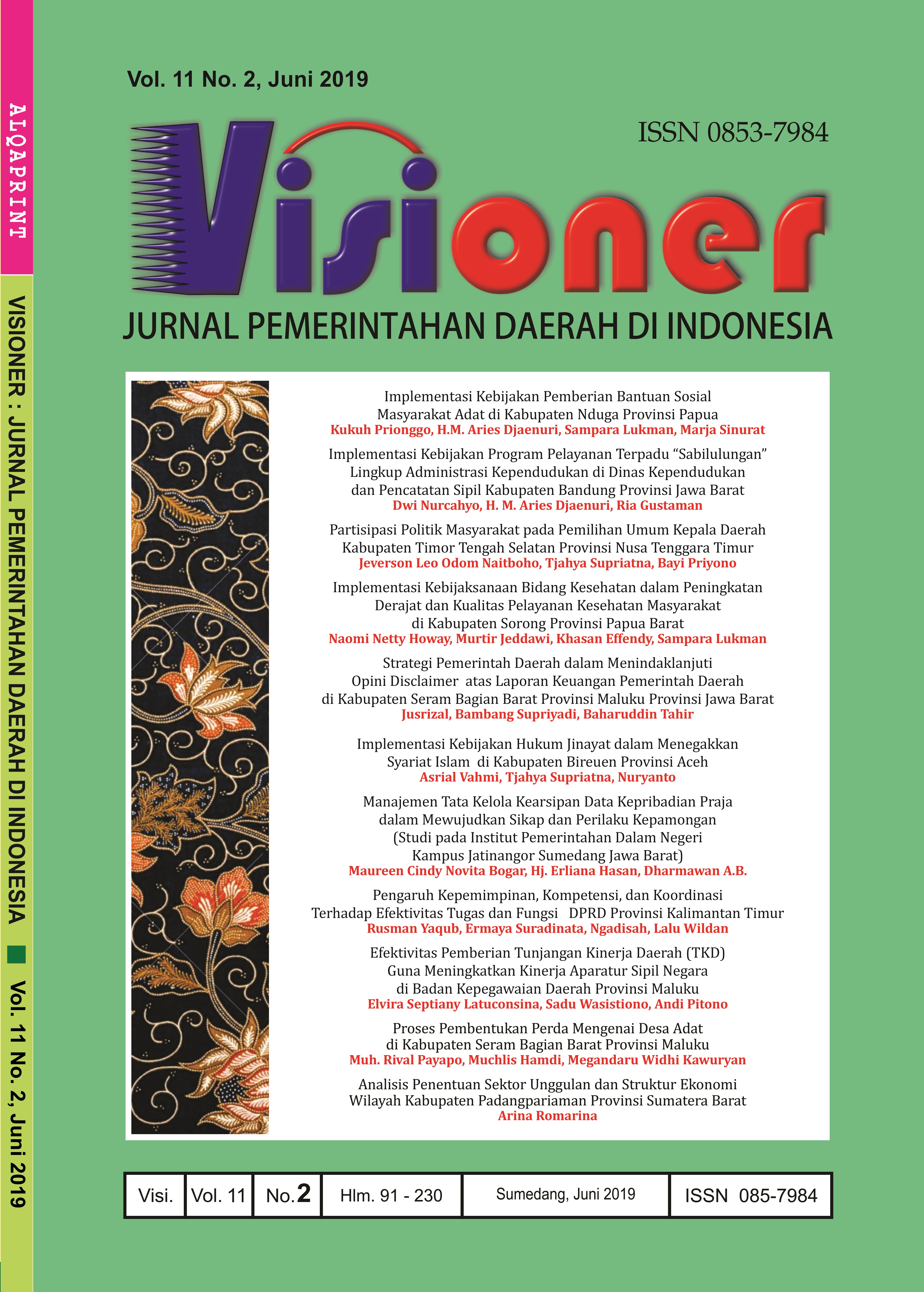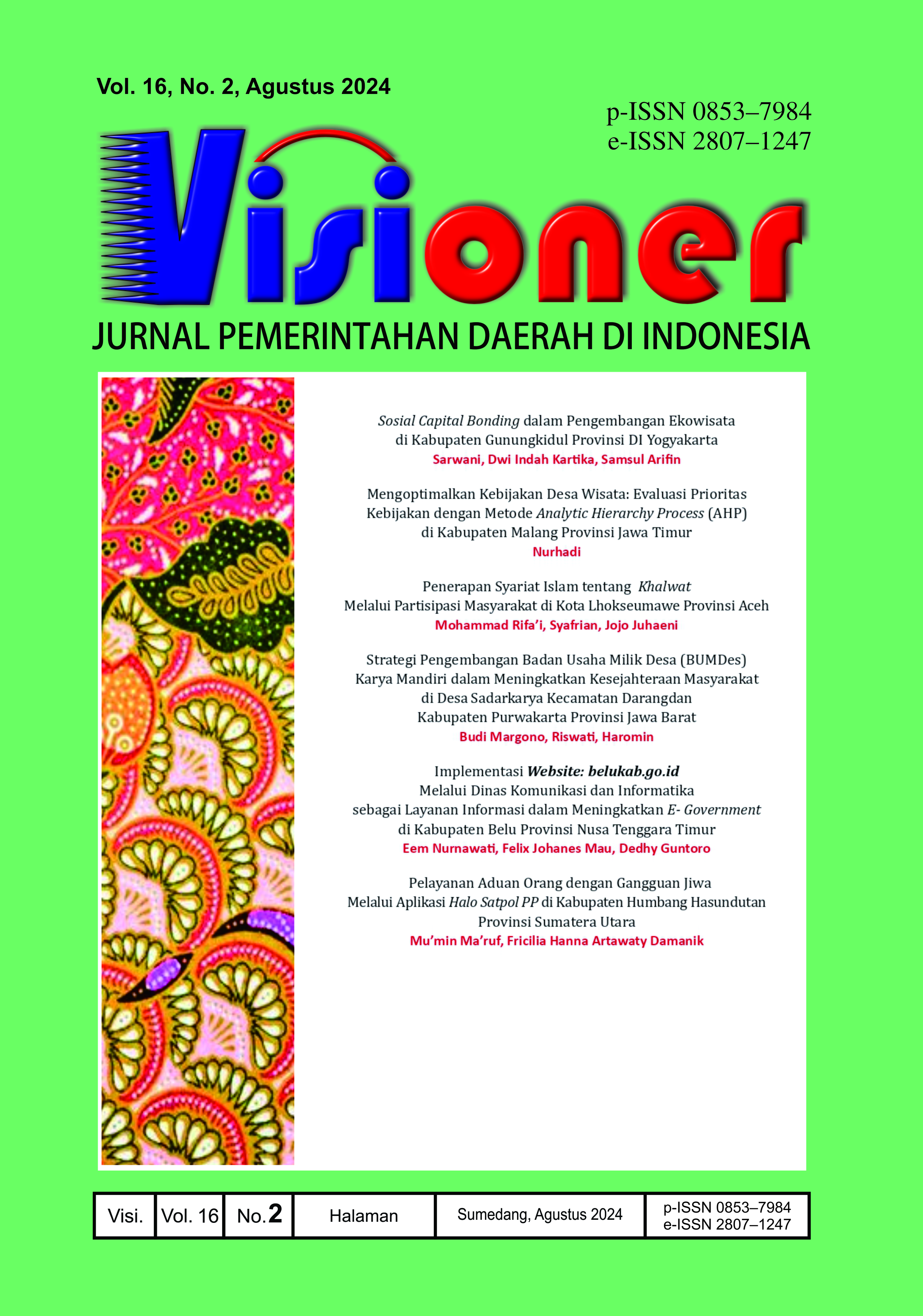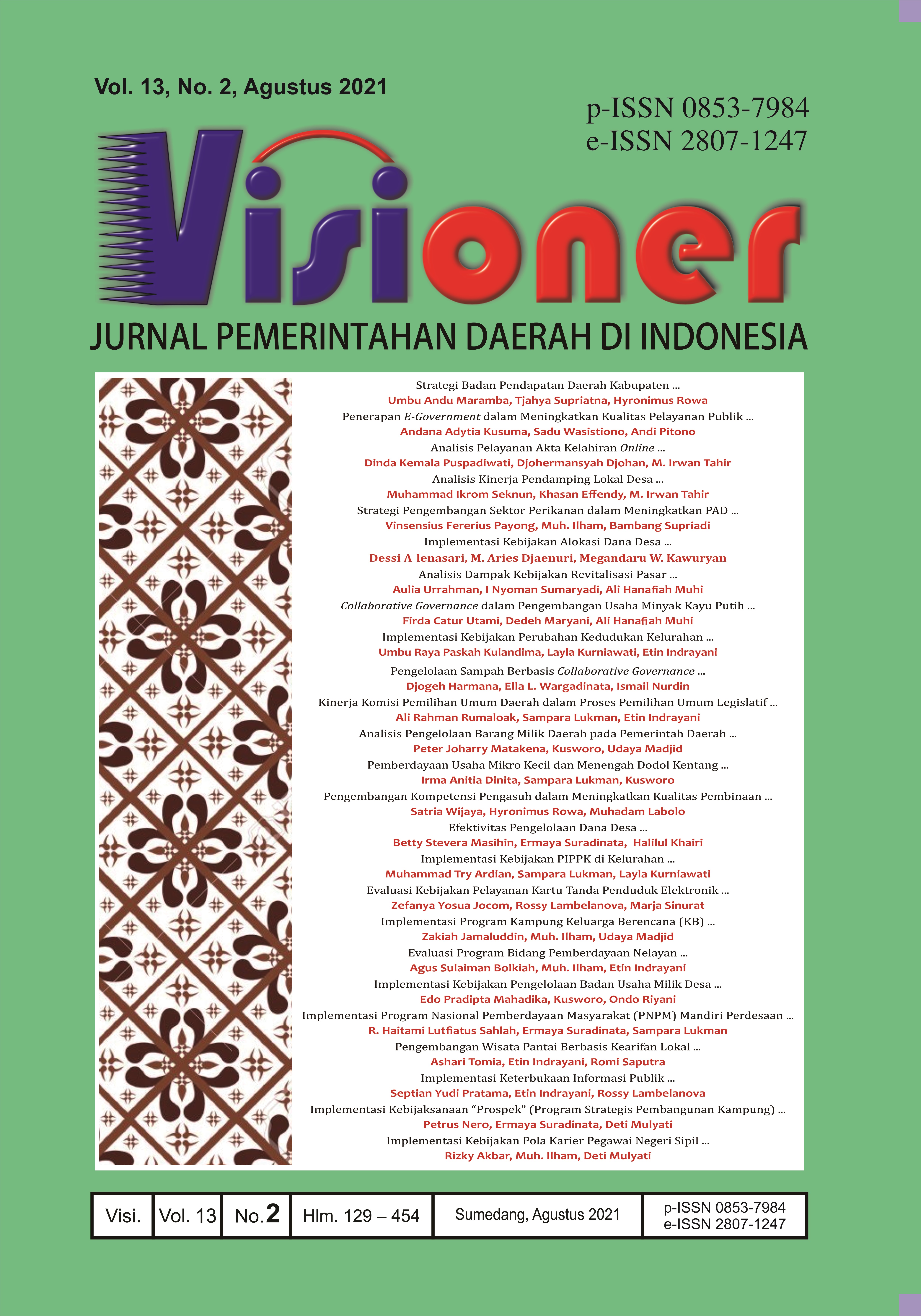 • Visioner: Jurnal Pemerintahan Daerah di Indonesia