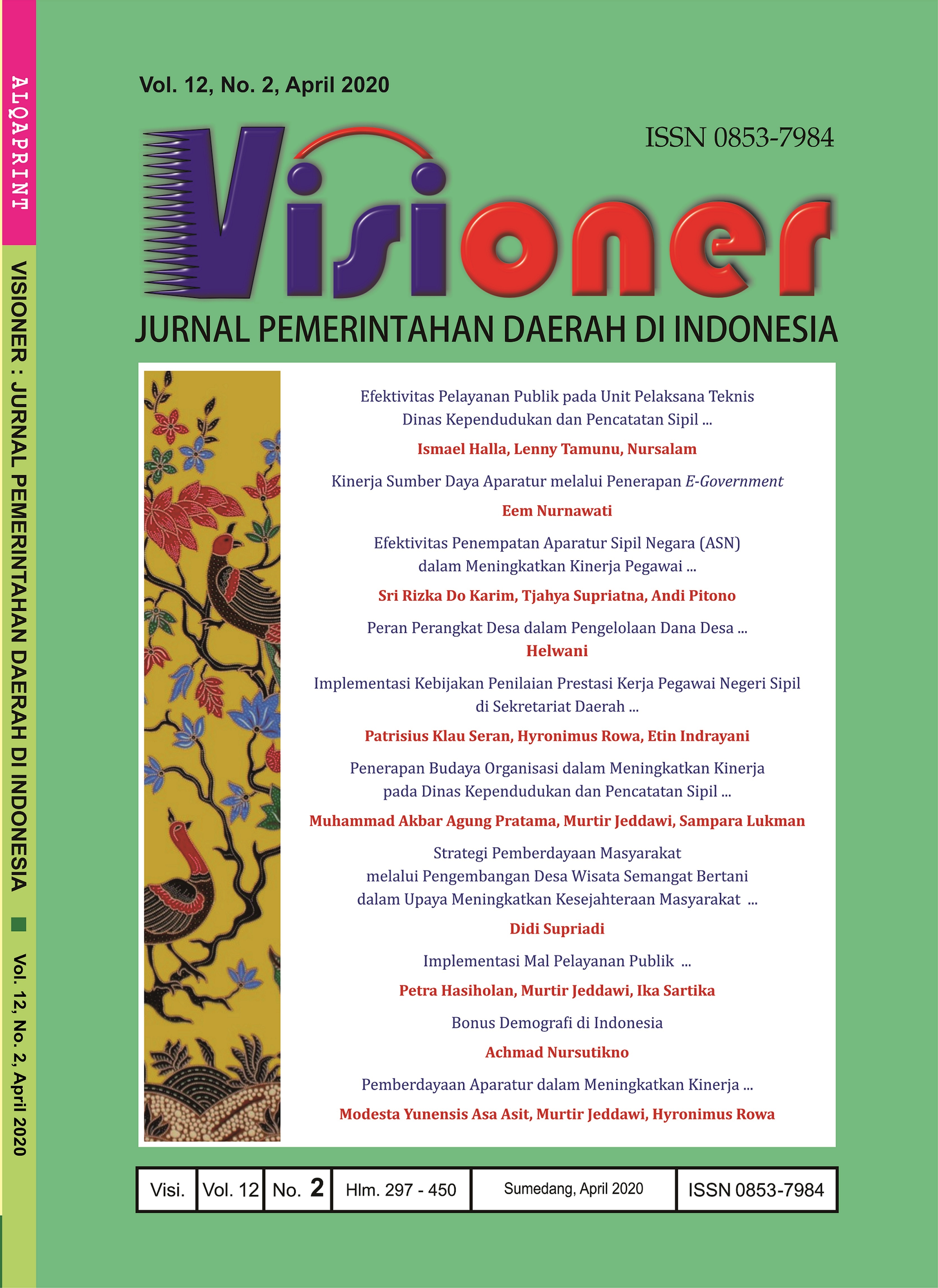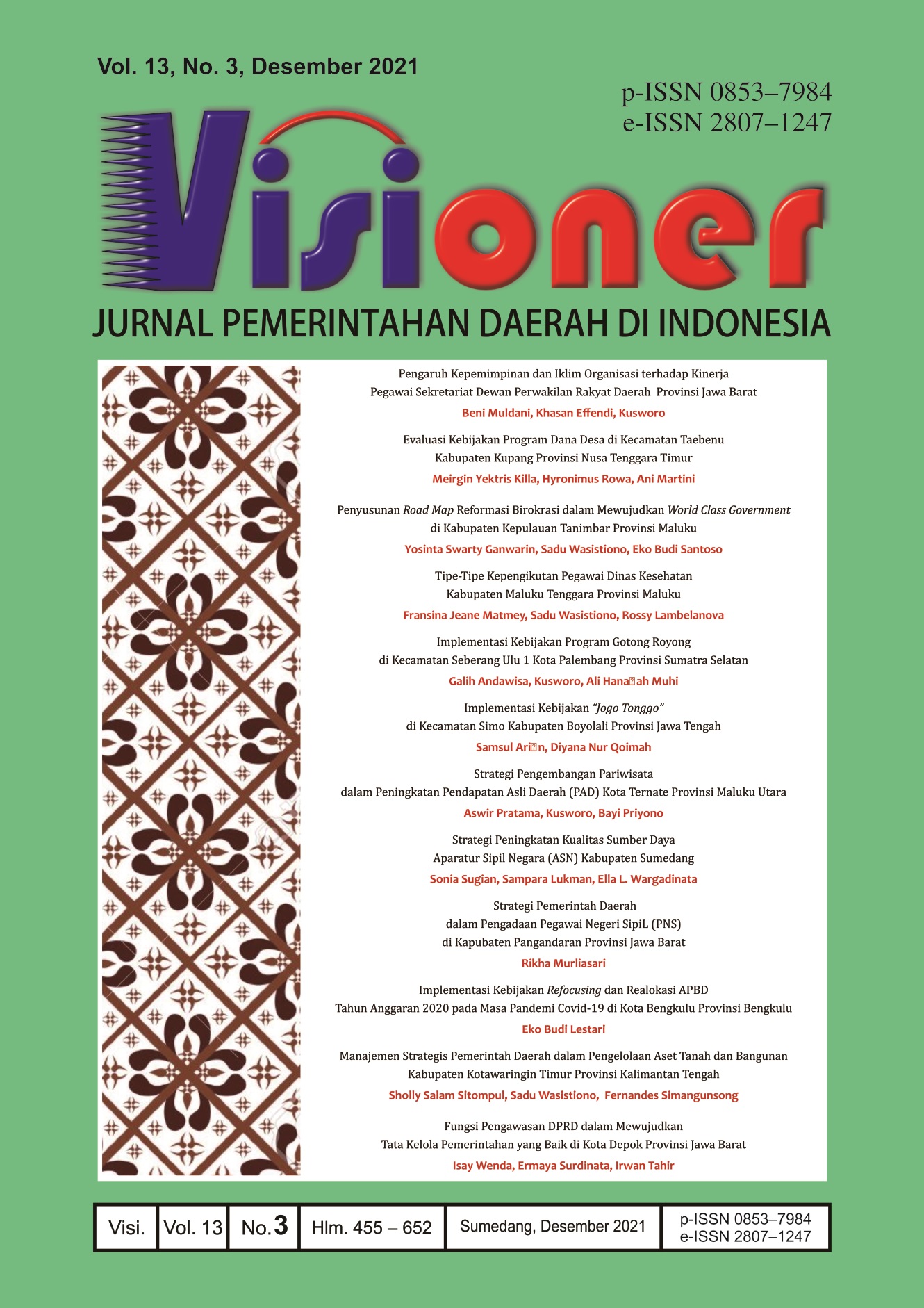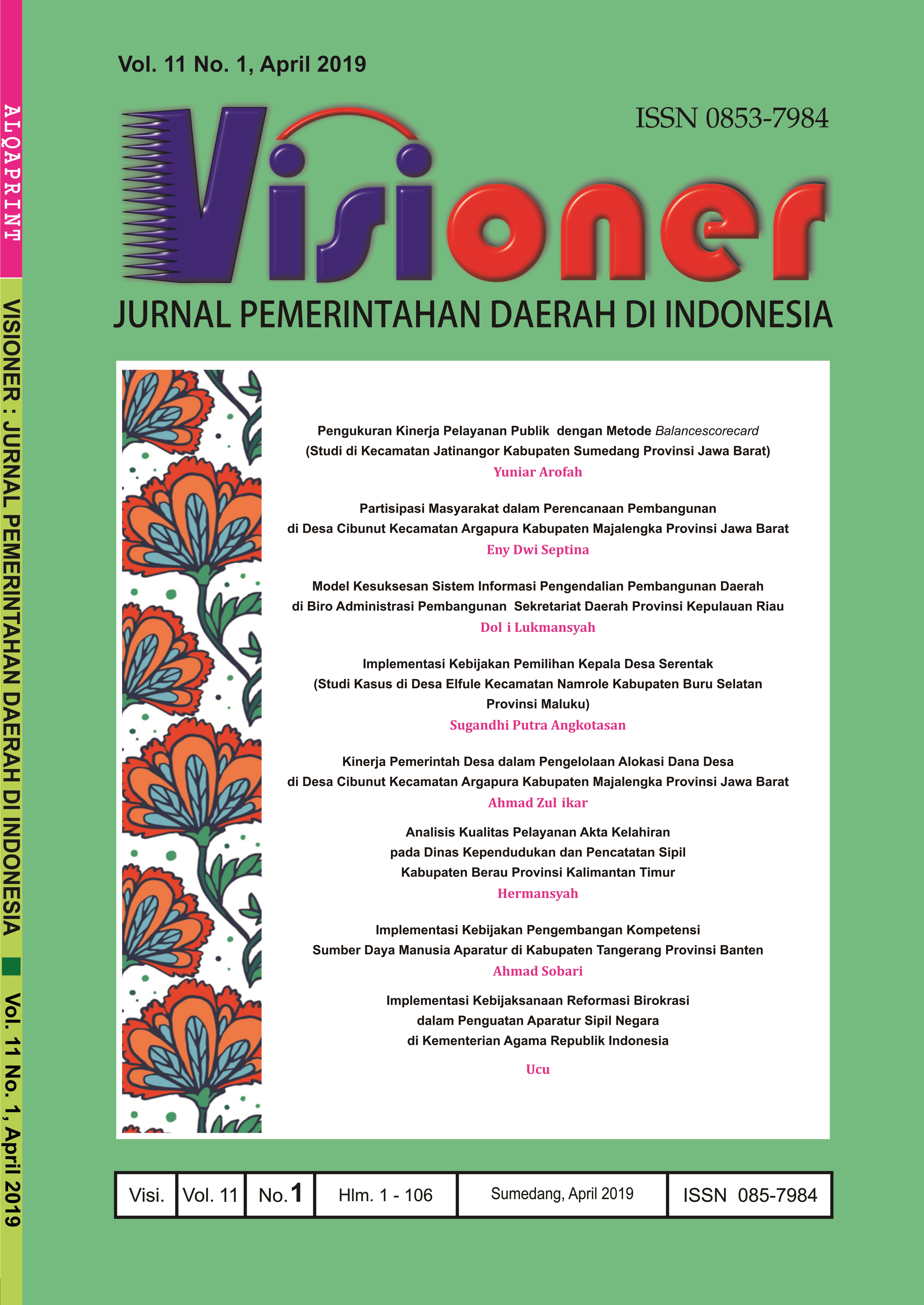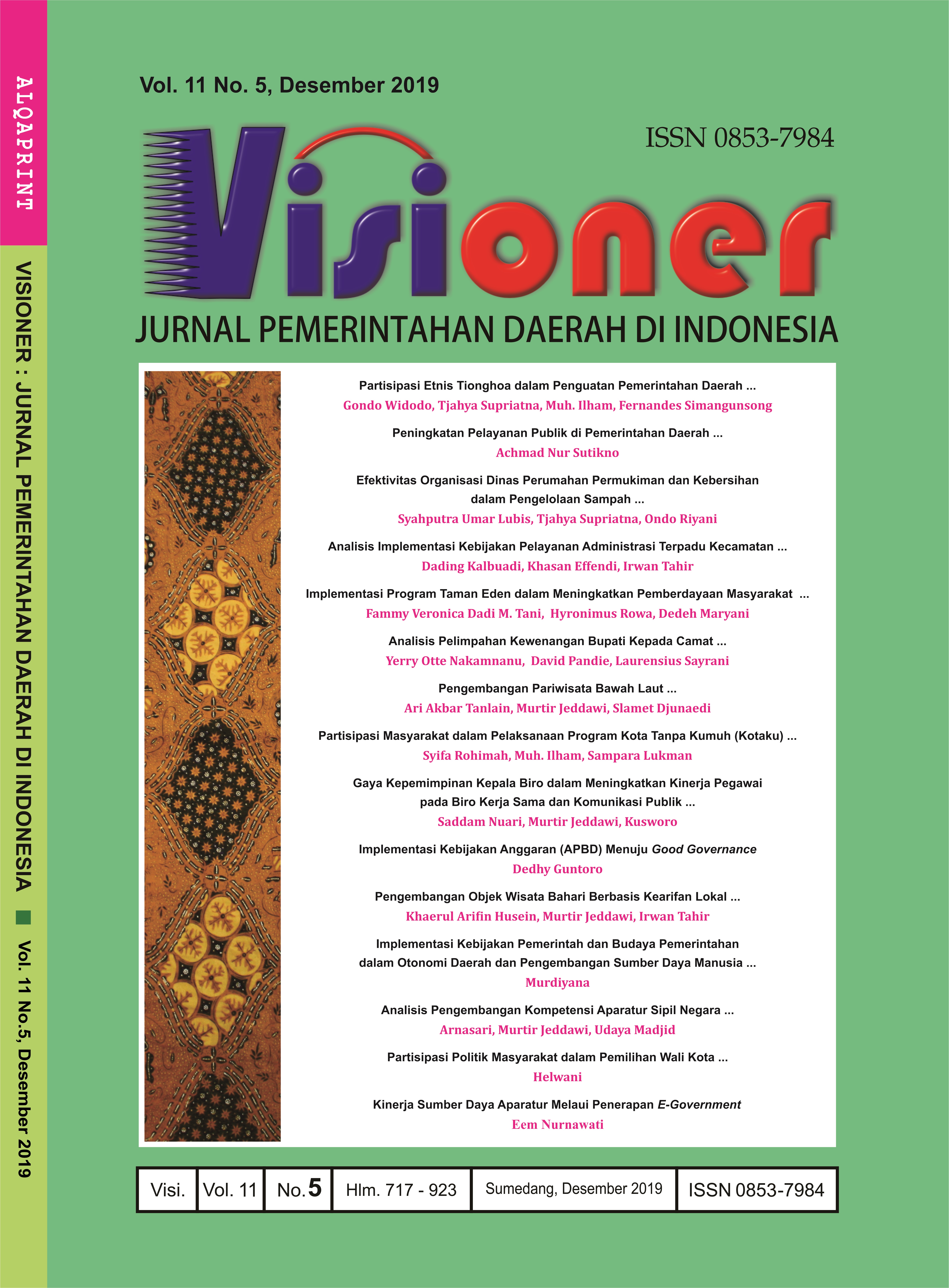 • Visioner: Jurnal Pemerintahan Daerah di Indonesia